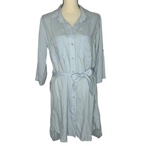 Cloth & Stone Light Blue Button Down Long Sleeve T-Shirt Dress with Waist Tie