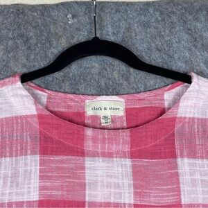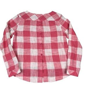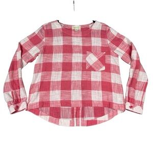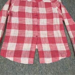 Cloth & Stone Linen Blend Button-Back Preppy Casual Fun Gingham Blouse - Sz M