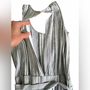 Cloth & Stone Linen Blend Striped Jumpsuit Size S Gray White Cropped Wide Leg