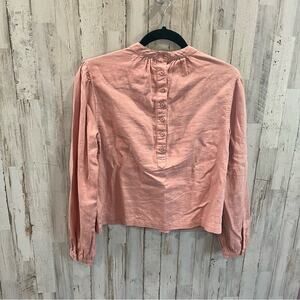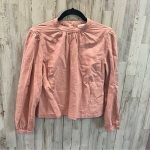 Cloth & Stone Linen Blend Top Pink High Neck Career Popover Long Sleeve