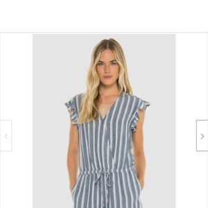 Cloth & Stone M linen blend blue & white striped romper. Plunging V-neck w/pocks