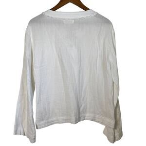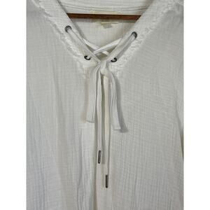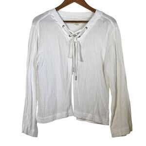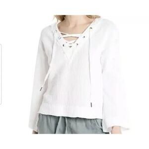 Cloth & Stone · Medium · Lace Up V-Neck Top · White Gauze Wide Sleeve Blouse