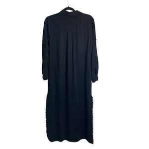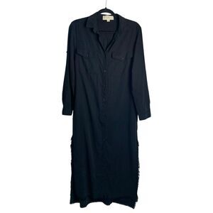 Cloth & Stone Midi Shirt Dress Frayed Hem Pockets Button Up Long Sleeve Black S