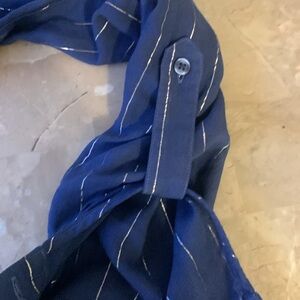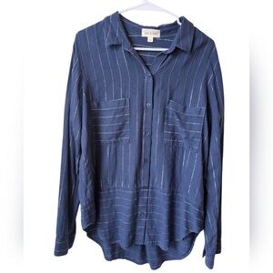 Cloth & Stone Navy Metallic Striped Linen Blend Button Down Shirt Size L