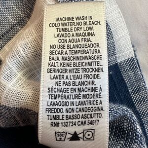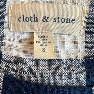 This beautiful blue and white linen blend blouse from Cloth and Stone is a versatile addition to any wardrobe. With a round neckline and long sleeves, it's perfect for any occasion, from casual to business or even cocktail parties. The blouse features a plaid pattern and back button detail, adding a touch of cowboy and beach themes to this colorful top. It's lightweight, easy to care for, and suitable for all seasons. Available in size S, this regular fit blouse is machine washable.