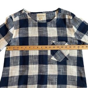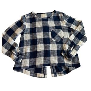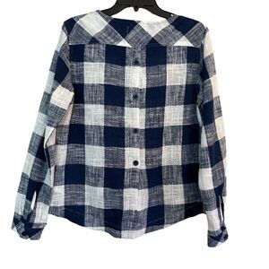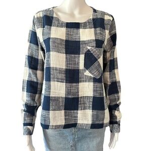 Cloth & Stone Plaid Linen Blend Long Sleeve Blouse Back button detail Women's S