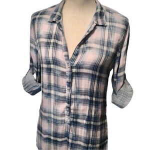 Cloth & Stone Plaid Shirt Dress Lightweight Cotton Size Medium