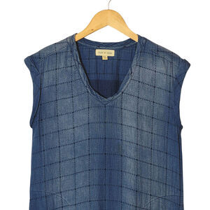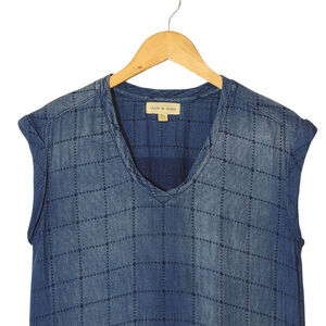 Cloth & Stone Quilted Chambray Blue Midi Dress Boho Chic Raw Hem Relaxed Fit XS