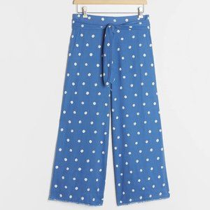 Size M blue and white Anthropologie Cloth & Stone Rita Cropped Wide-Leg Trousers. This pair offers a comfortable fit if you want to lounge at home or go out. NWT.