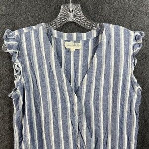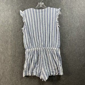 Cloth & Stone Romper Women's Small Blue White Striped Linen Blend Side Pockets.