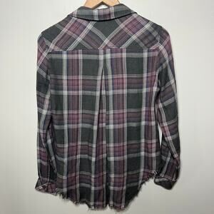 Cloth & Stone Shirt Flannel Raw Hem Gray Pink Plaid Rayon Casual Boho Comfy S