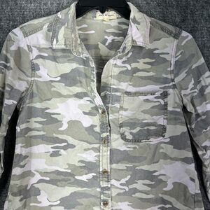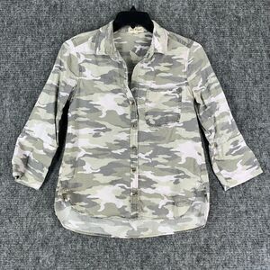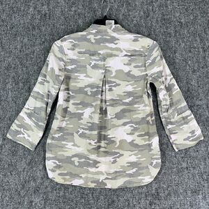 Cloth Stone Shirt Womens Extra Small Camo Gray Button Up 3/4 Sleeve Casual