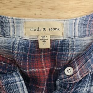 Cloth & Stone Shirt Womens Small Blue Red Plaid Button Up Long Sleeve Frayed Hem