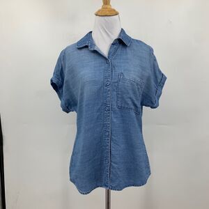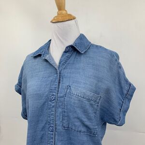 Cloth & Stone Shirt Womens XS Extra Small Blue Chambray Button Up Cuffed Sleeve