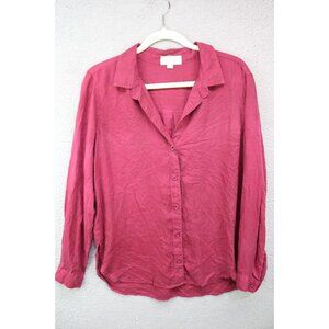Cloth & Stone Silky Button Up Blouse-Size Medium-Burgundy