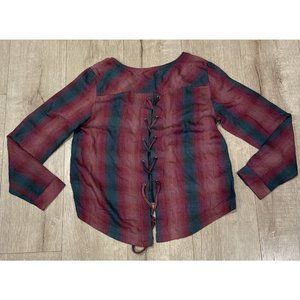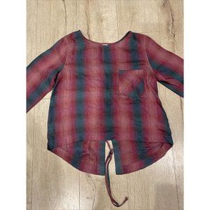 Cloth & Stone Size Small Top Shirt Pink Gray Flannel Open Back Anthropologie. This item