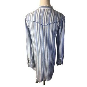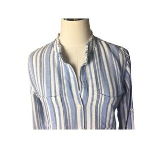 Cloth & Stone Size XS Dress Western Striped Fray Hem Button Shirt Blue Linen