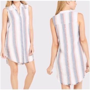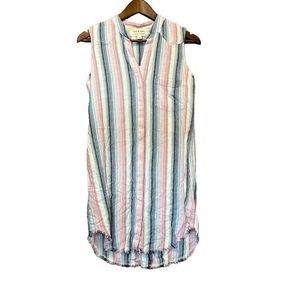 Cloth & Stone Sleeveless Striped Shirt Dress Frayed Hem Casual Comfy size xsmall