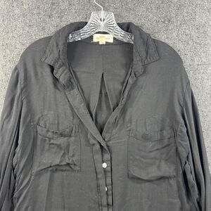Cloth & Stone Slit Back Top Women's Extra Large Black Button Down Roll Tab USA