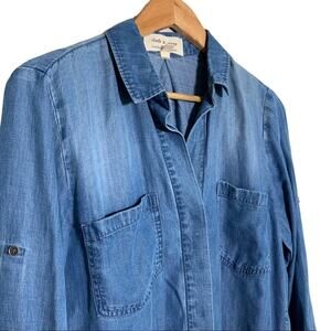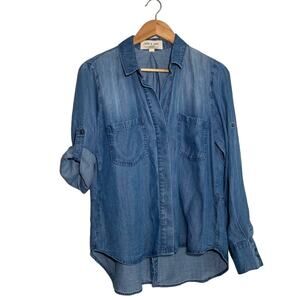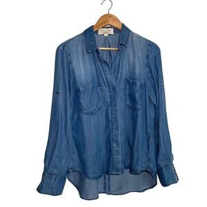 Cloth & Stone Split Back Chambray Button Down Top Blue Small Anthropologie