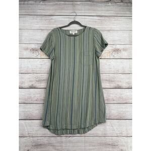 Cloth & Stone Striped Linen Blend Button Back Tunic Dress Women's M Green/Blue