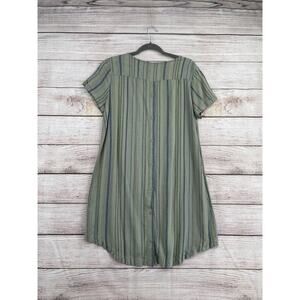 Item: Cloth & Stone Striped Linen Blend Button Back Tunic Dress Women's Medium Green/Blue