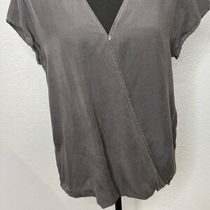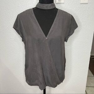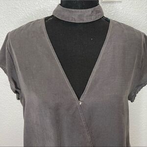 Cloth & Stone Tencel Chocker Surplice Neck Women Gray Top Sz Small