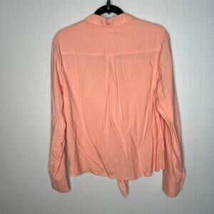 Cloth & Stone Tie Front Blouse Peach Orange Button Up Collared Long Sleeve Sz M
