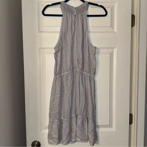 Elegant grayish purple dress with a tiered design. Sleeveless and stylish for any occasion. Elastic waist. Size medium. Like new condition.