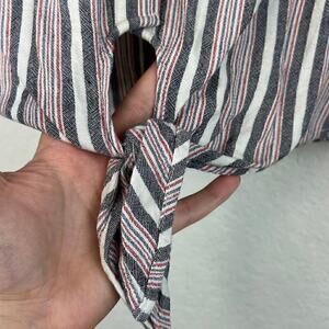 Cloth & Stone Top Small Linen Blend Button Tie Waist Striped White Red Blue