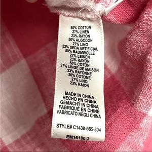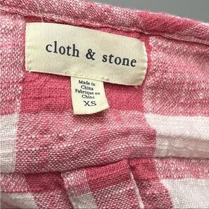 Cloth & Stone Top Sz XS Pink White Check Gingham Button Back Linen Blend Cottage
