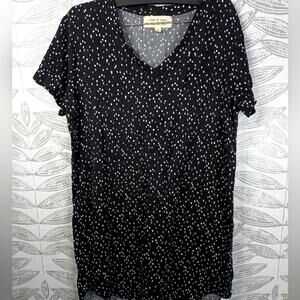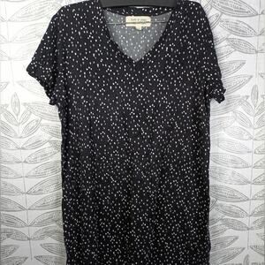 Cloth & Stone Top V Neck Tunic Spotted Rayon Black