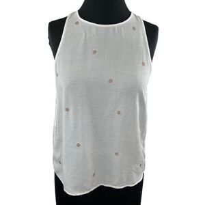 ✨Cloth & Stone White Polka Dot Sleeveless Round Neck Laser Cut Sz L Blouse✨