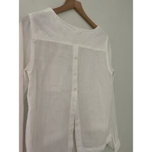 Cloth & Stone Button Back Top XS White Long Sleeve Hi Low Casual Minimalist