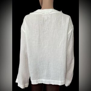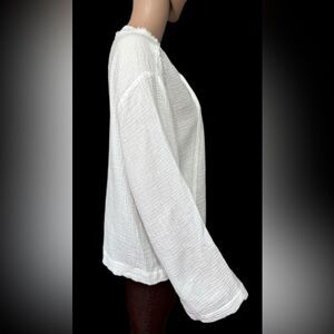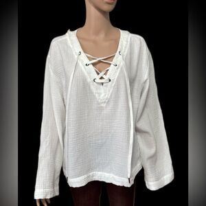Cloth & Stone Womens Blouse L Large White Cotton Top Lace Up Neck Long Sleeve