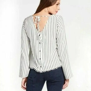 Cloth & Stone Women's Button-Back Striped Top Size XS Frayed Hem Flared Sleeve