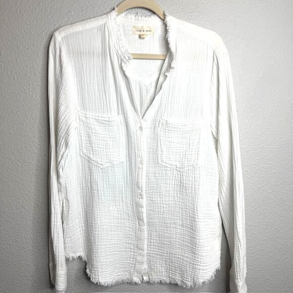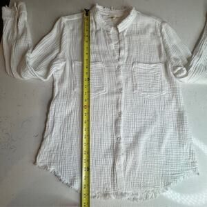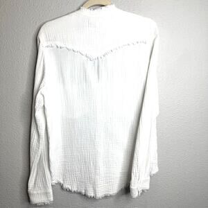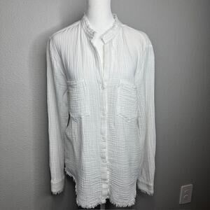 Cloth & Stone Womens Essential White Frayed Gauze Shirt Sz Small