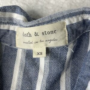 The Cloth & Stone Womens Knee Shirt Dress in blue stripes is a stylish and versatile piece for any woman's wardrobe. With a flattering knee length and long sleeves with roll tab detail, this dress combines comfort and style effortlessly. The XS size ensures a perfect fit for those looking for a more tailored silhouette. Perfect for various occasions, this shirt dress is a must-have for any fashion-forward woman. Frayed hem.