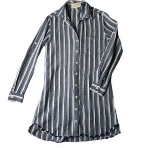 Cloth & Stone Women’s Knee Shirt Dress Roll Tab Blue Striped Long Sleeve XS
