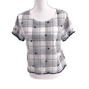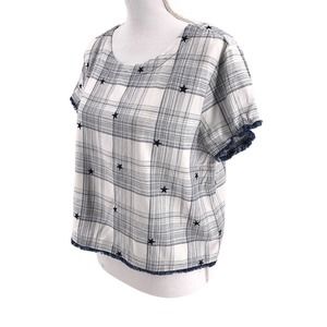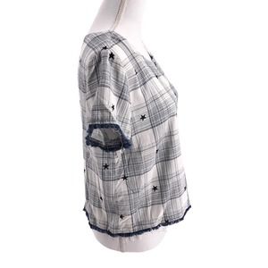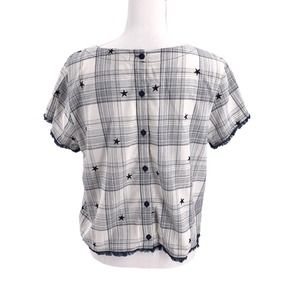 Cloth & Stone Womens Size Medium Plaid & Stars Back Button-Up Fringe Blouse