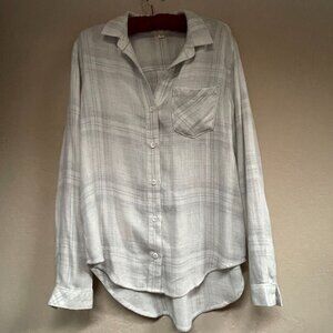 Cloth & Stone Womens XS Button Down Long Sleeve Shirt Top Lightweight Plaid Gray