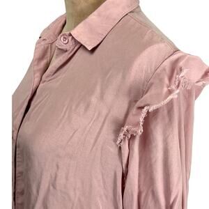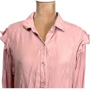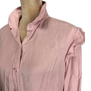 Cloth & Stone X Anthropologie Womens Pink Top Button Front Raw Ruffle Trim Sz Lg