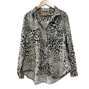 Keywords / tags: Cloth & Stone, Anthropologie, Tencel top, animal print blouse, olive leopard, long sleeve shirt, size XL, button down, soft drapey, everyday chic. Pool