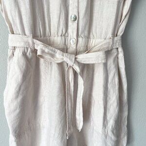 Cloth & Stone for Anthropologie Safari Linen Romper Women's L Button Up Beige