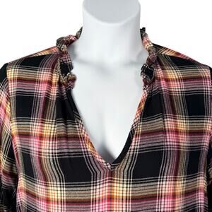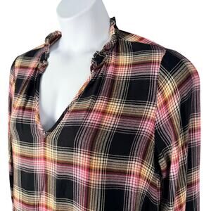 Cloth & Stone for Anthropologie Top Large Soft Flannel Plaid Ruffle Trim Charley