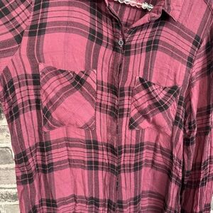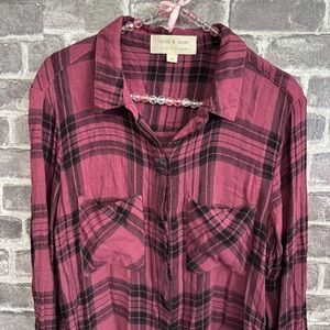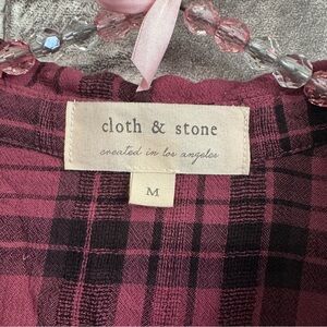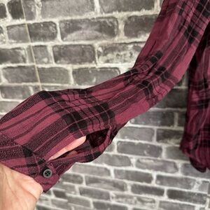 Cloth & Stone plaid button down shirt maroon black blouse