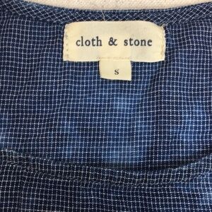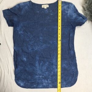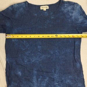 Cotton tee with side slits - allover grid print with distressed blue color - soft cotton fabric- size Small - gently Worn