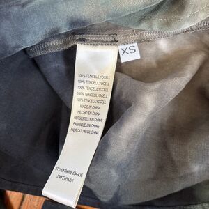 The Cloth & Stone x Anthropologie Green Button Up Tie Dye Button Down Shirt in size XS is a stylish and versatile blouse perfect for any occasion. Made from lightweight and breathable Lyocell material, this shirt features a collared neckline, long sleeves, and a button closure. The tie dye pattern adds a trendy touch, while the green color gives it a fresh and hipster vibe. With a regular fit and straight sleeves, this blouse is a must-have for women who love designer fashion with a bohemian twist. Easy to care for with machine washable instructions, this shirt is a fashionable and functional addition to any wardrobe.