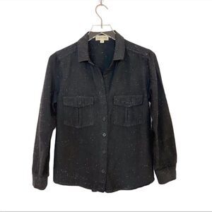 Cloth & Stone/Anthropologie Black Speckled Cropped Button Down L