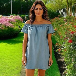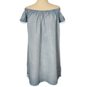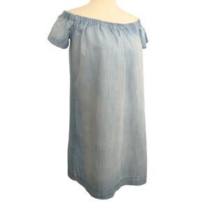 Cloth & Stone Chambray Dress Shift Mini Off Shoulder Light Wash XS Tencel Tunic